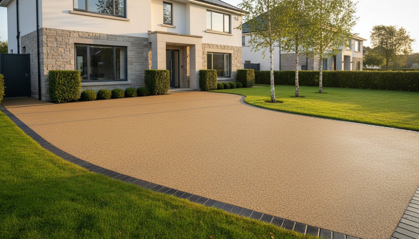 Resin bound surfacing is the best choice for the wet Irish climate because it’s fully permeable. Water drains directly through the surface at a rate of up to 850 litres per square metre per minute, which prevents puddles and ice patches. This makes it a safer, more durable option for homes in coastal areas like Bray and Greystones where rainfall is frequent. It’s a key reason why we’re the leading driveway contractors Dublin homeowners trust.